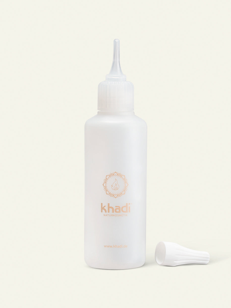 Un champú perfecto hecho fácil: nuestra botella aplicadora khadi es tu ayudante definitivo al lavarte el cabello: para la dosificación y mezcla óptimas de tu champú khadi, para la consistencia más hermosa y finamente cremosa de la espuma, para una aplicación dirigida y que los ingredientes activos del elixir khadi puedan desplegar su eficacia concentrada directamente en su cuero cabelludo.