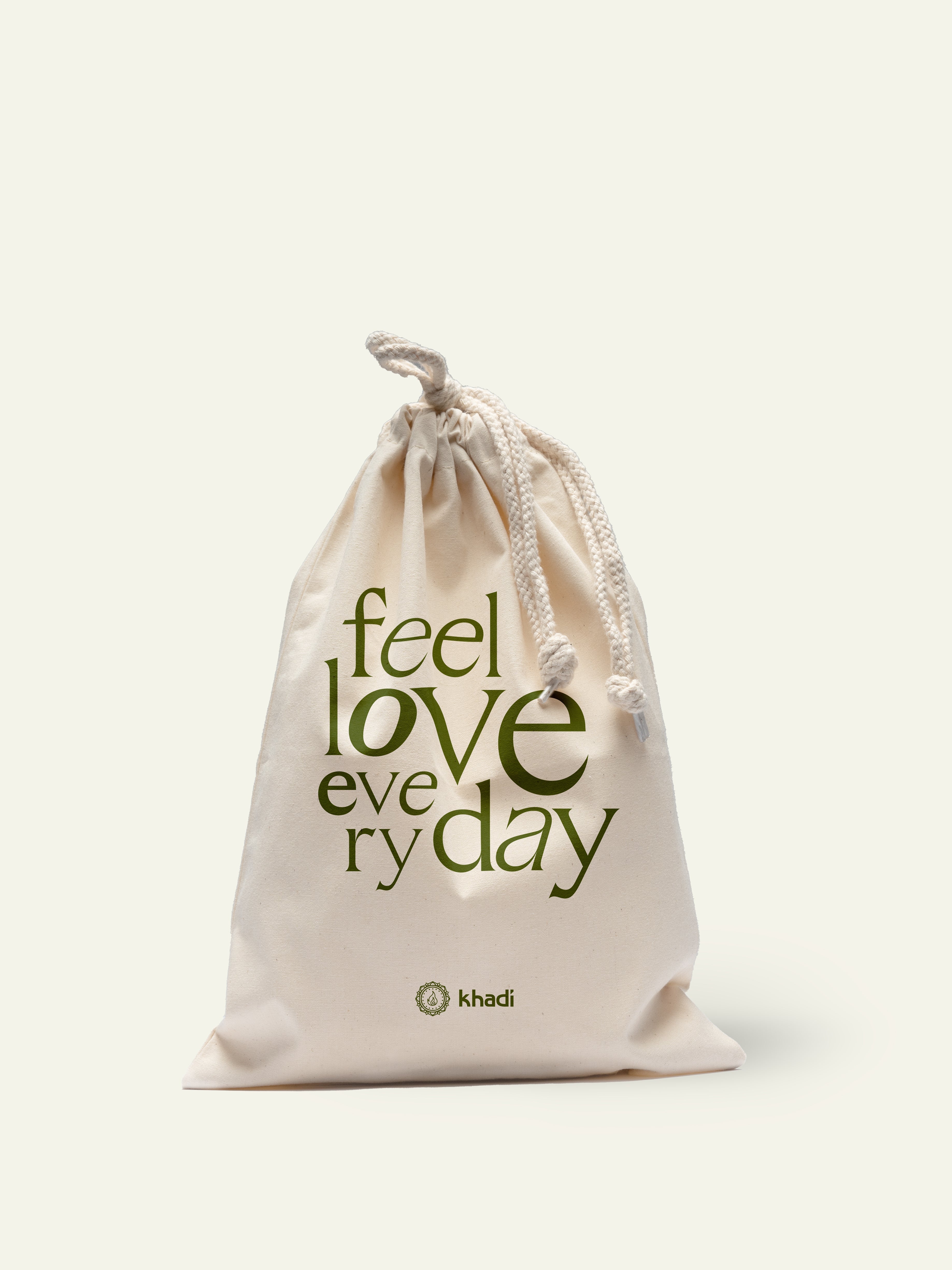 Gracias a su práctico tamaño, cabe perfectamente en cualquier bolso que necesites para llevar o para el día a día. El cordón permite un acceso rápido y fácil, y después de usarlo, es fácil de limpiar y reutilizar: tus productos khadi se sentirán especialmente cómodos aquí.