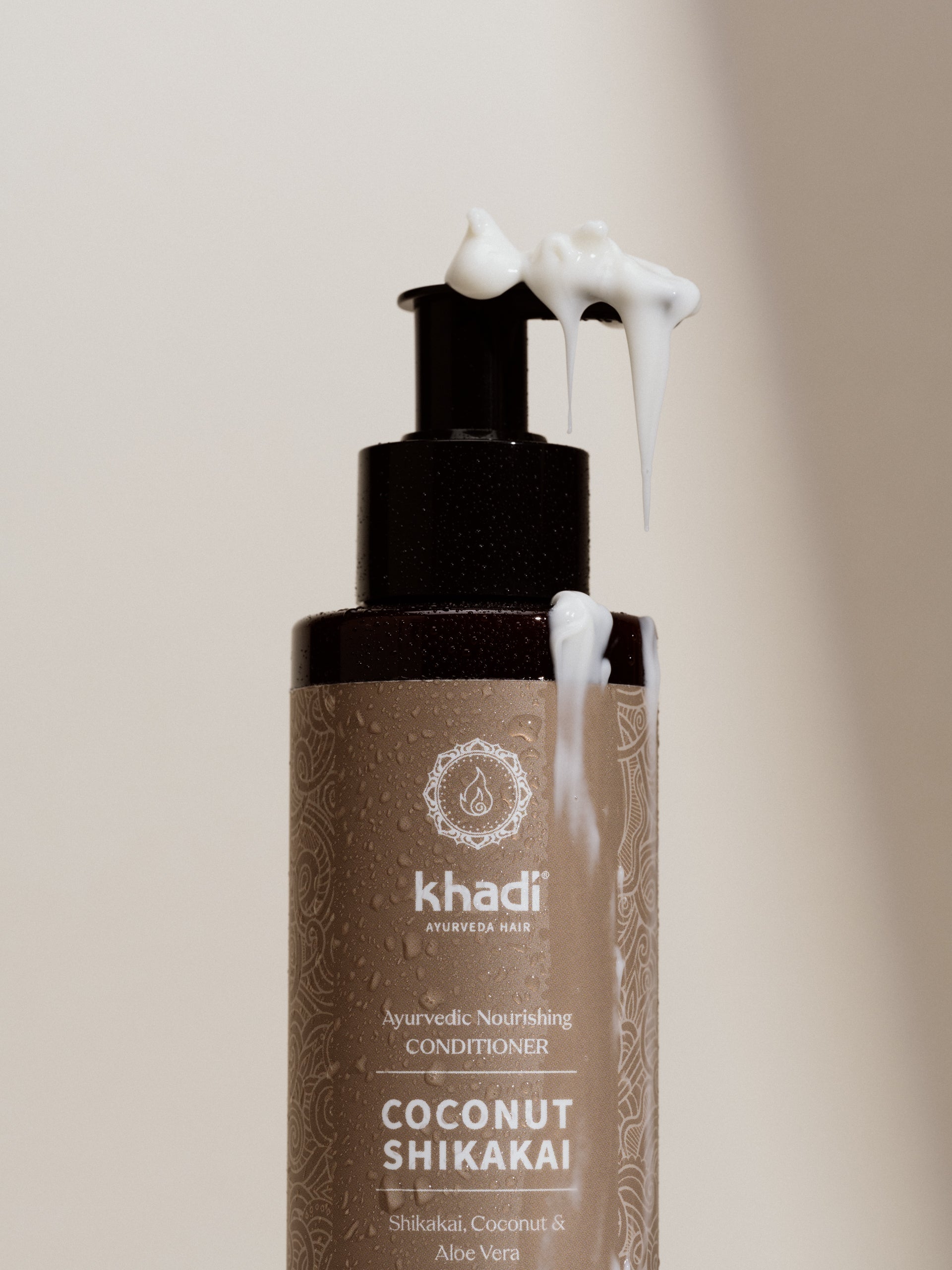El secreto único de la eficacia de Coconut Shikakai reside en el elixir ayurvédico khadi Shikakai, un extracto altamente concentrado de plantas medicinales ayurvédicas seleccionadas a mano. El elixir Shikakai se basa en una combinación ayurvédica tradicional de hierbas, corteza y frutas. Estas se hierven suavemente y se remueven según los principios de fabricación ayurvédica hasta que se potencian los mágicos poderes curativos de la naturaleza. En Ayurveda, esta "poción mágica" se denomina decocción medicinal. La proporción de elixir khadi Shikakai en tu acondicionador es de hasta un 20 %, en comparación con solo un 2-5 % de ingredientes activos en los acondicionadores cosméticos naturales convencionales.