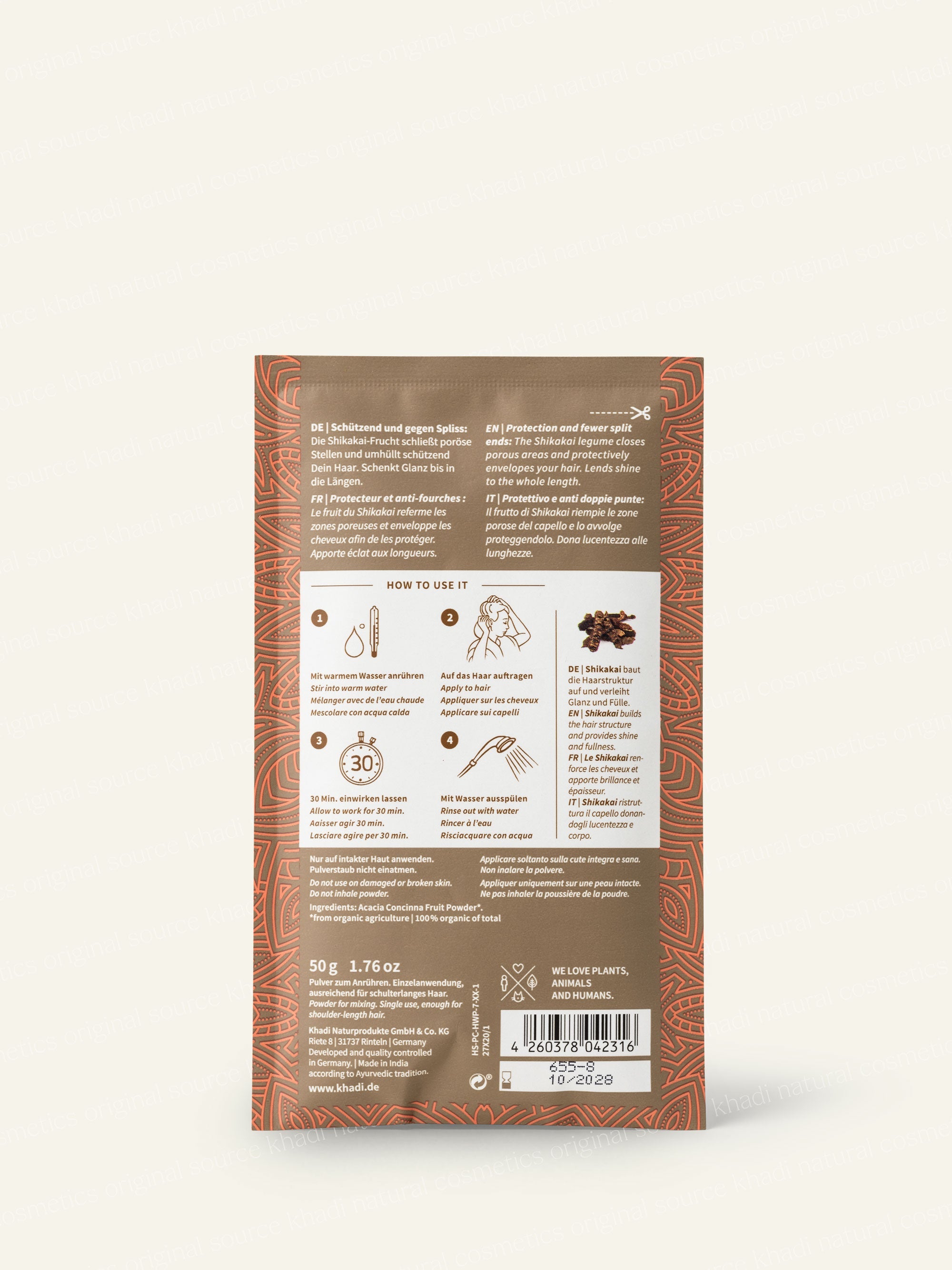 Para un cabello con un efecto ayurvédico impactante: khadi Deep Shine Shikakai es una mascarilla capilar altamente concentrada que, al estilo ayurvédico tradicional, aporta un brillo saludable y combate la sequedad, las puntas abiertas y la rotura. El polvo fino y altamente concentrado de la vaina de shikakai limpia y acondiciona suavemente el cabello sin resecarlo, cierra la porosidad y fortalece la estructura capilar. Deep Shine Shikakai protege y envuelve el cabello con delicadeza como un manto sedoso que refleja la luz. Aporta cuerpo al cabello fino sin apelmazarlo. Tras su uso, el cabello brillará con un brillo renovado y una vitalidad natural hasta las puntas.