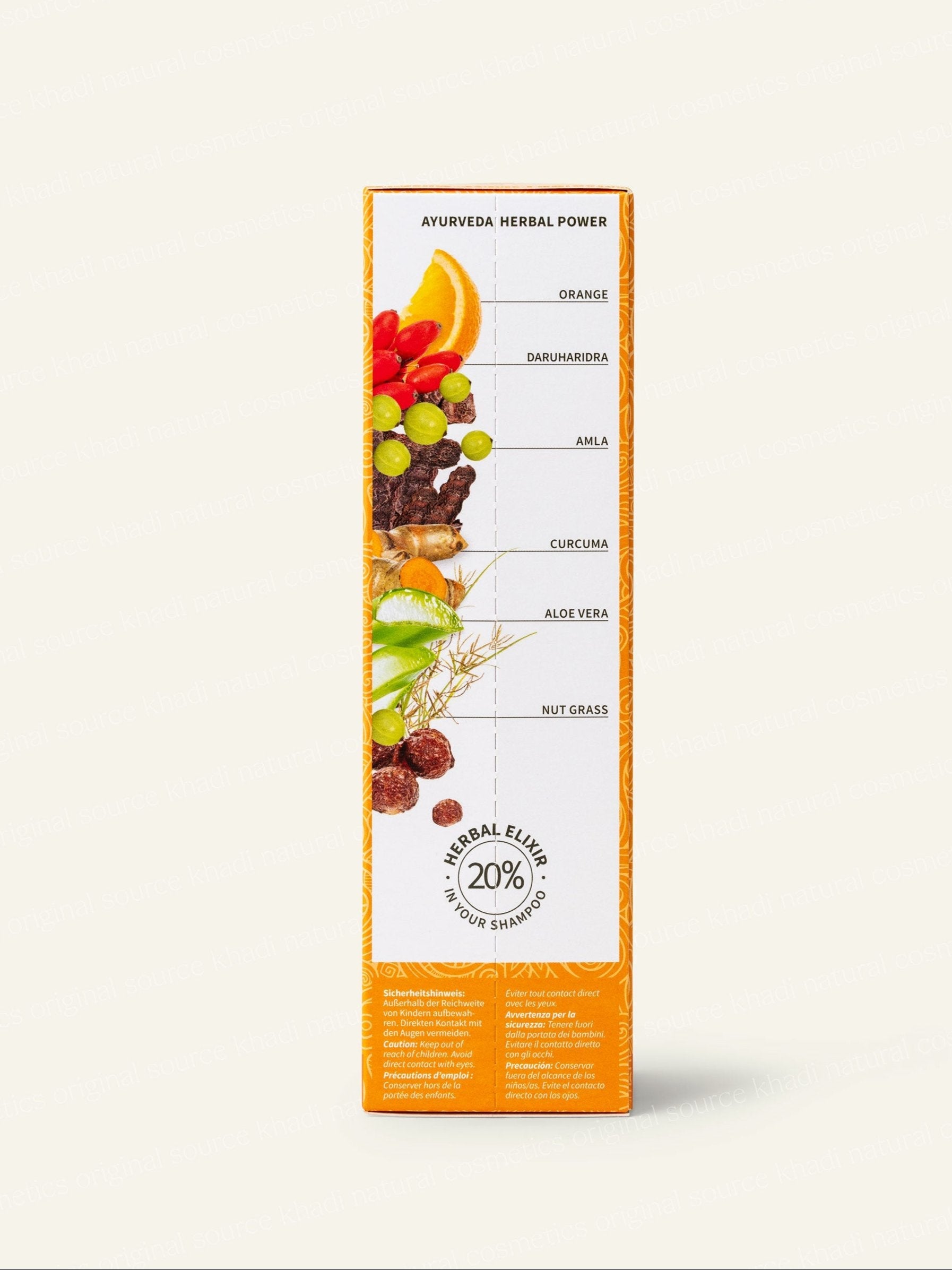 La proporción de khadi Vitality Elixir en su champú es de hasta un 20% en comparación con solo el 2-5% de ingrediente activo en el champú cosmético natural convencional.