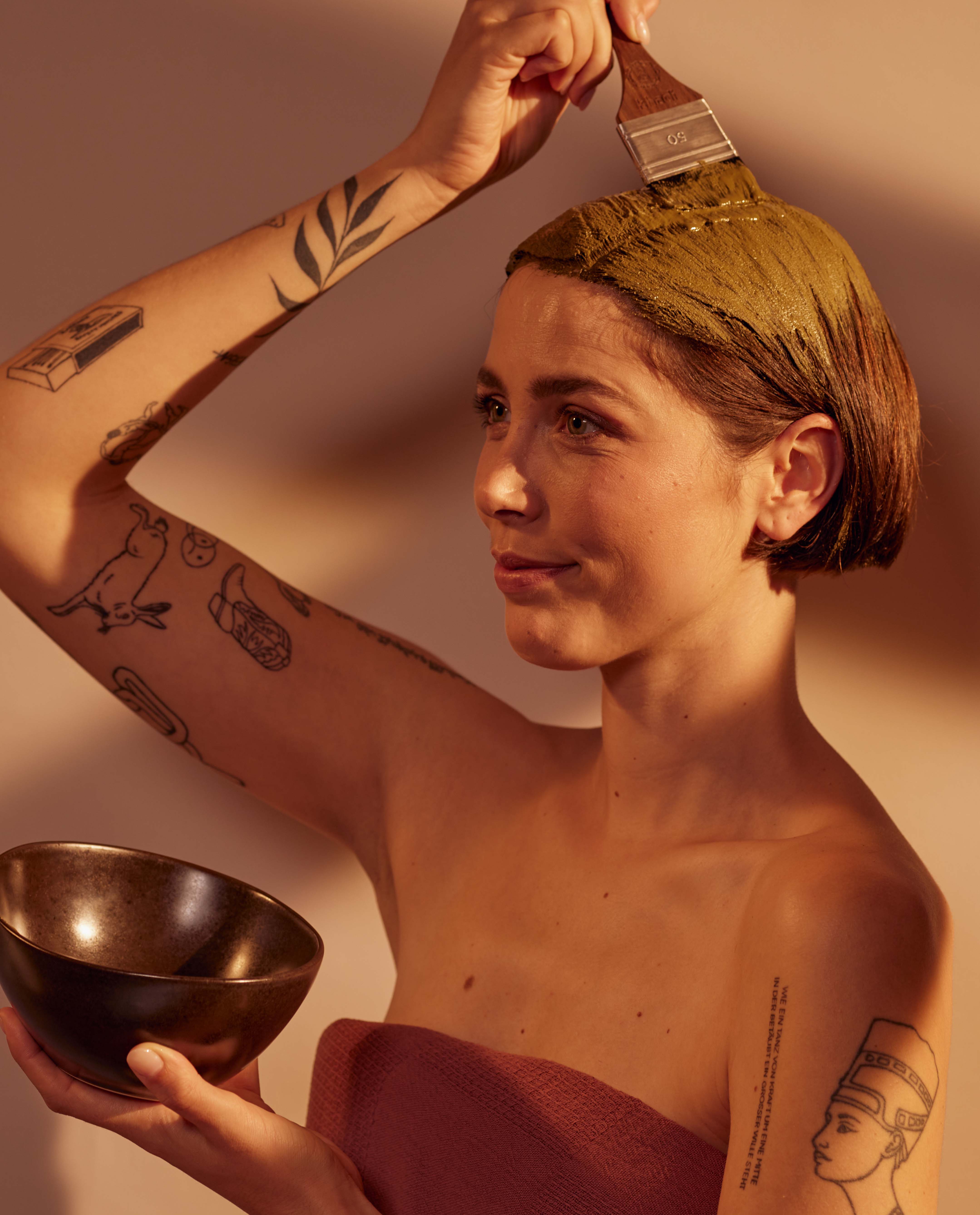 Descubre cómo aplicar el tinte vegetal khadi en nuestro tutorial.