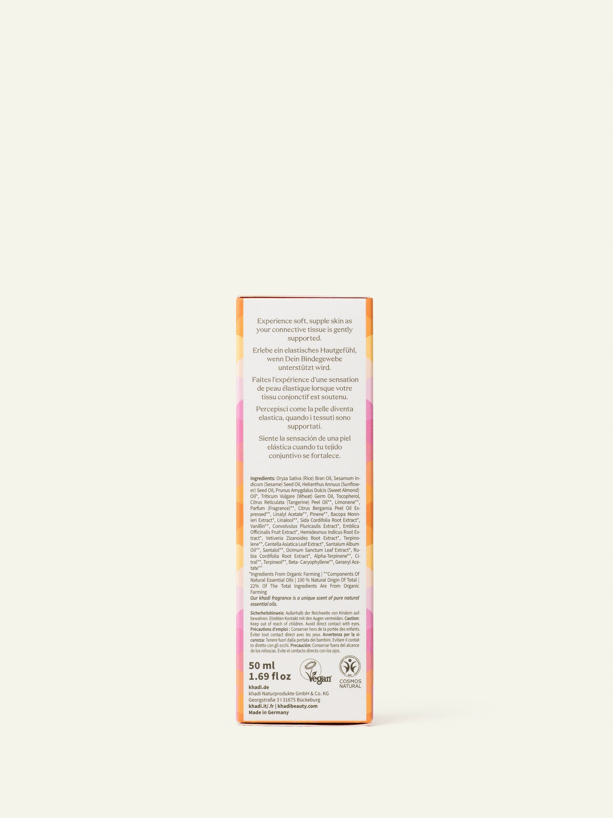 KHADI CENTELLA ELIXIR está presente en alta concentración en este aceite corporal, alcanzando hasta un 20% de ingredientes activos, en comparación con sólo el 2 al 5% en los aceites cosméticos naturales clásicos.