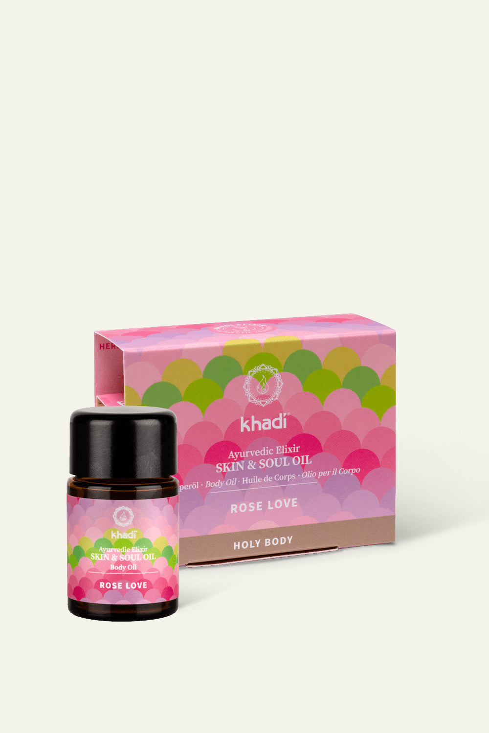 Combinado con khadi Shatavari Everyoung y khadi Pink Lotus Beauty, khadi Rose Love forma parte de la colección khadi Holy Body. Esta exclusiva gama encarna un enfoque holístico del cuidado de la piel, revelando tu luz interior a través de un ritual de belleza inspirado en el Ayurveda. Los aceites khadi Skin & Soul Elixier son una oda a la belleza y la armonía.