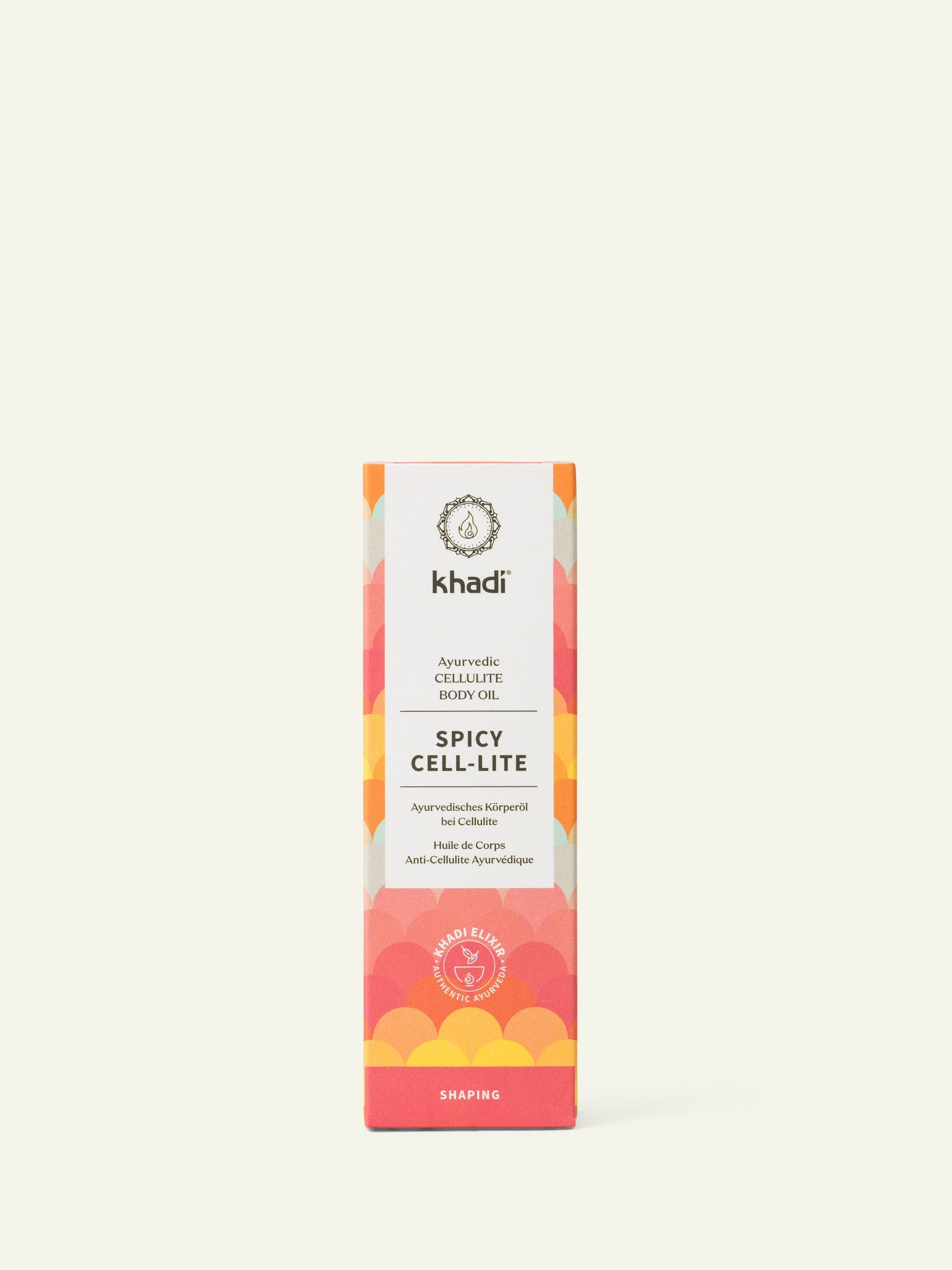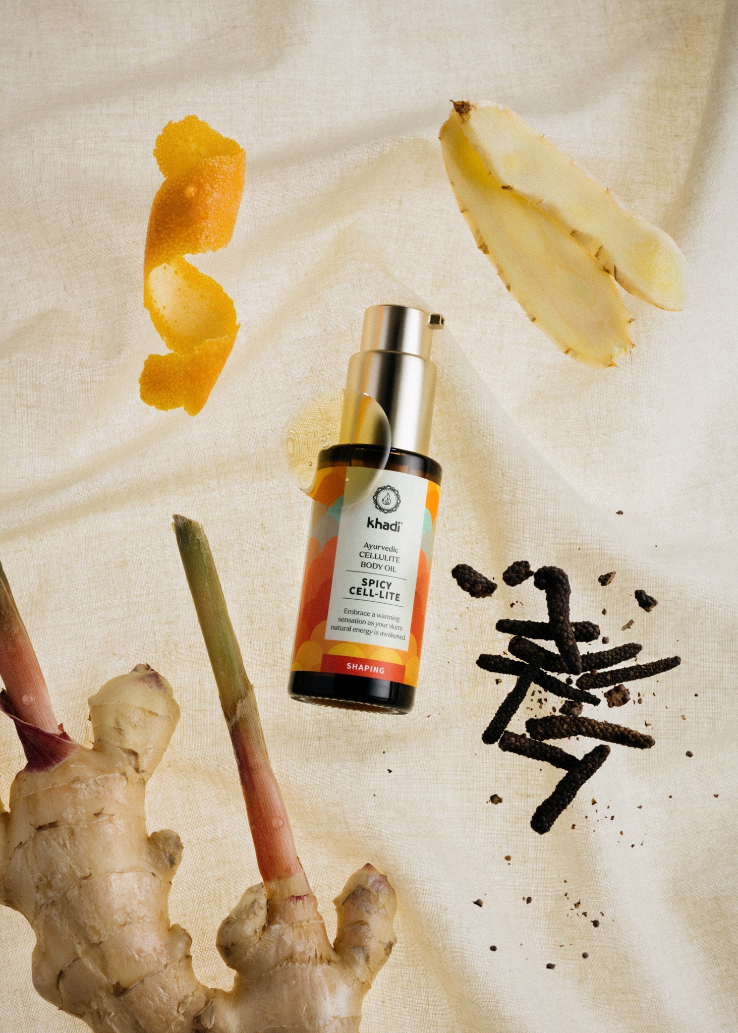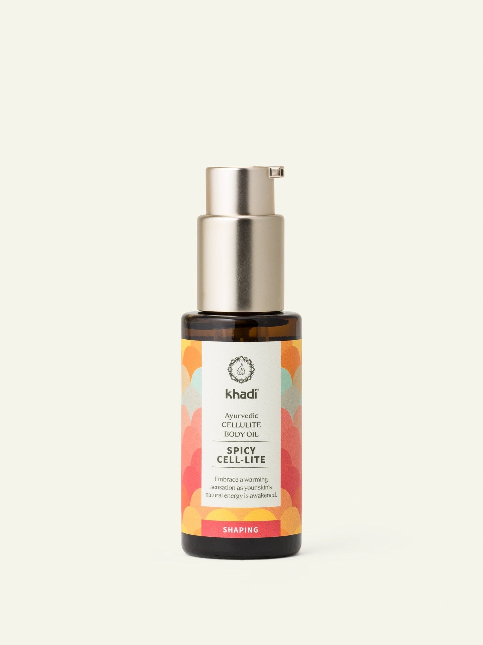 La concentración de KHADI SPICY CELL-LITE ELIXIR en este aceite corporal alcanza hasta el 20%, en comparación con sólo el 2 al 5% en los aceites cosméticos naturales clásicos.