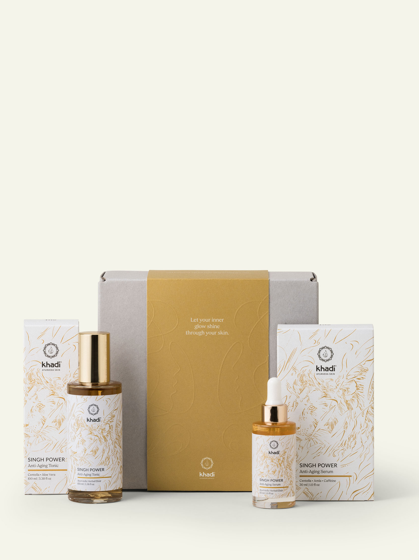 Inspirado en la medicina Ayurvédica, este set activa la vitalidad natural de la piel: la fortalece, la reafirma y le aporta una elasticidad notable. El elixir Ayurvédico Singh Power a base de hierbas medicinales actúa de forma intensiva para rejuvenecer la piel desde el interior y darle un nuevo brillo. El potente complejo de cafeína proporciona un efecto lifting notable.